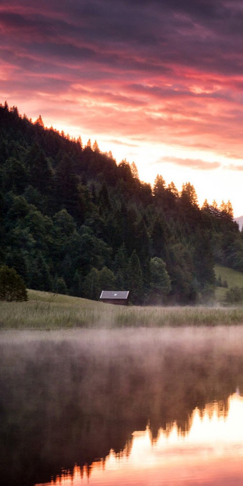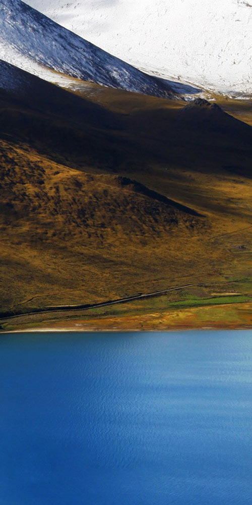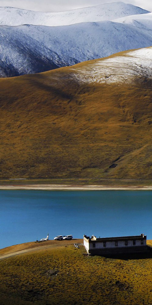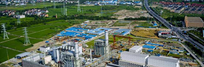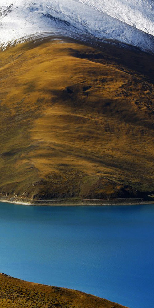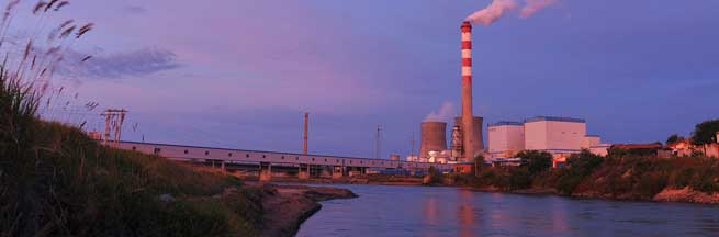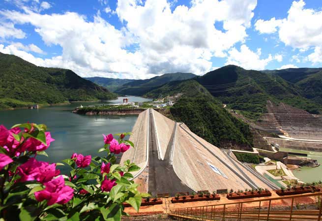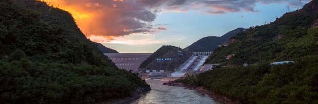 Nuozhadu Hydropower Station tinted with sunset glow